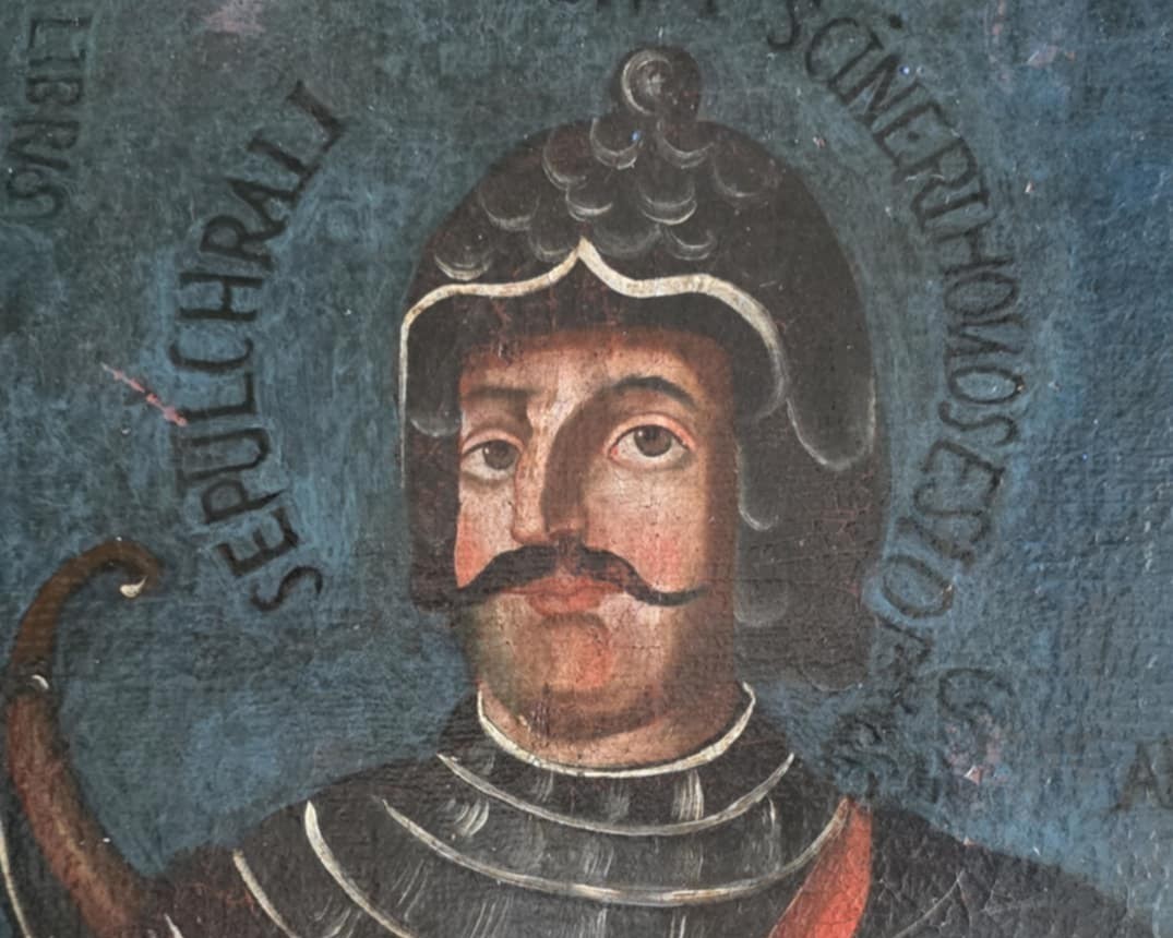 Detail olejomaľby, ktorá znázorňuje prvého známeho člena rodu Dessewffy, Desideriusa