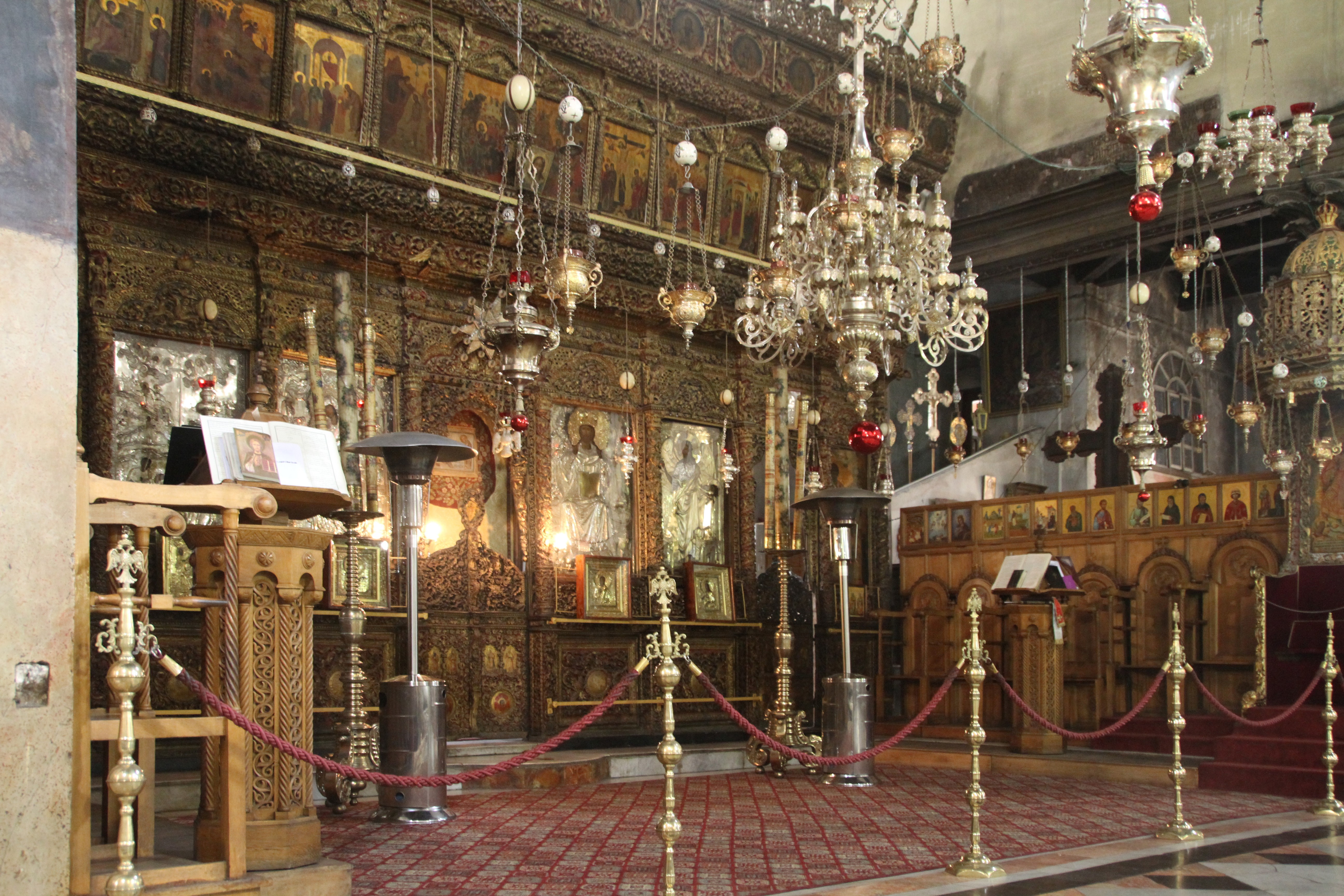 Záber z baziliky Narodenia Pána v Betleheme