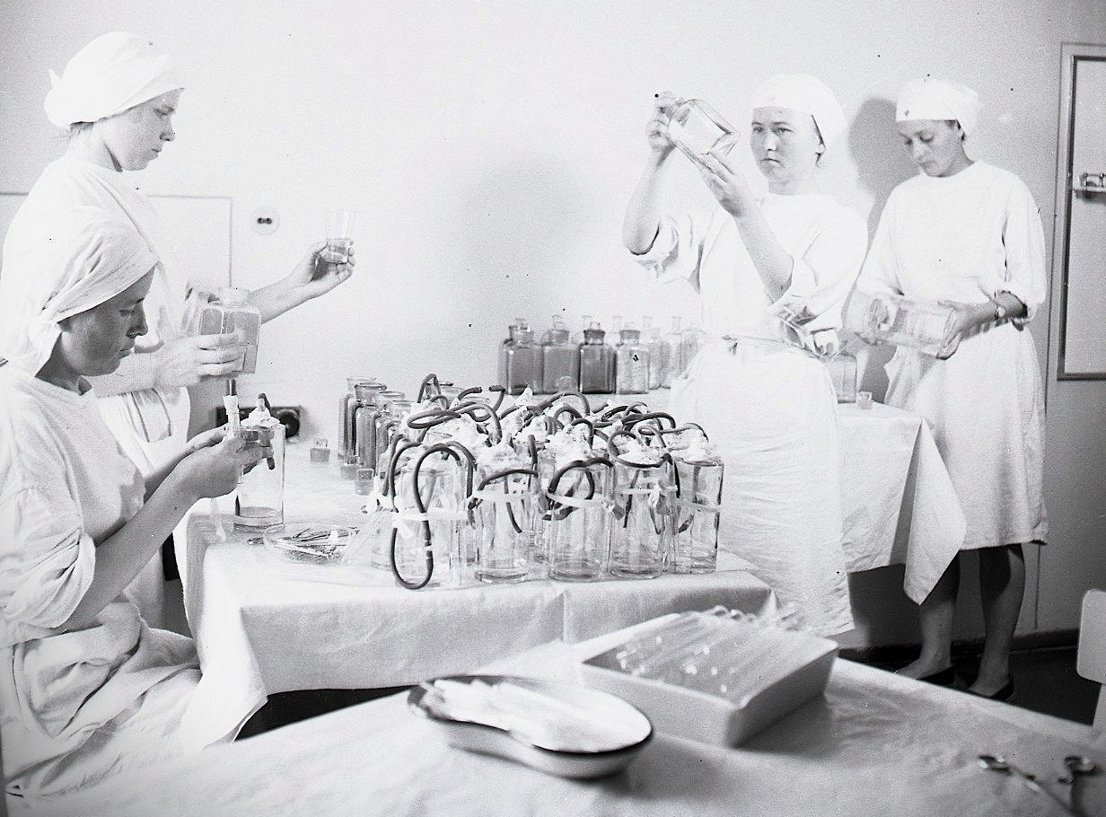 Príprava na darovanie krvi v roku 1950 v laboratóriu dr. Kocha
