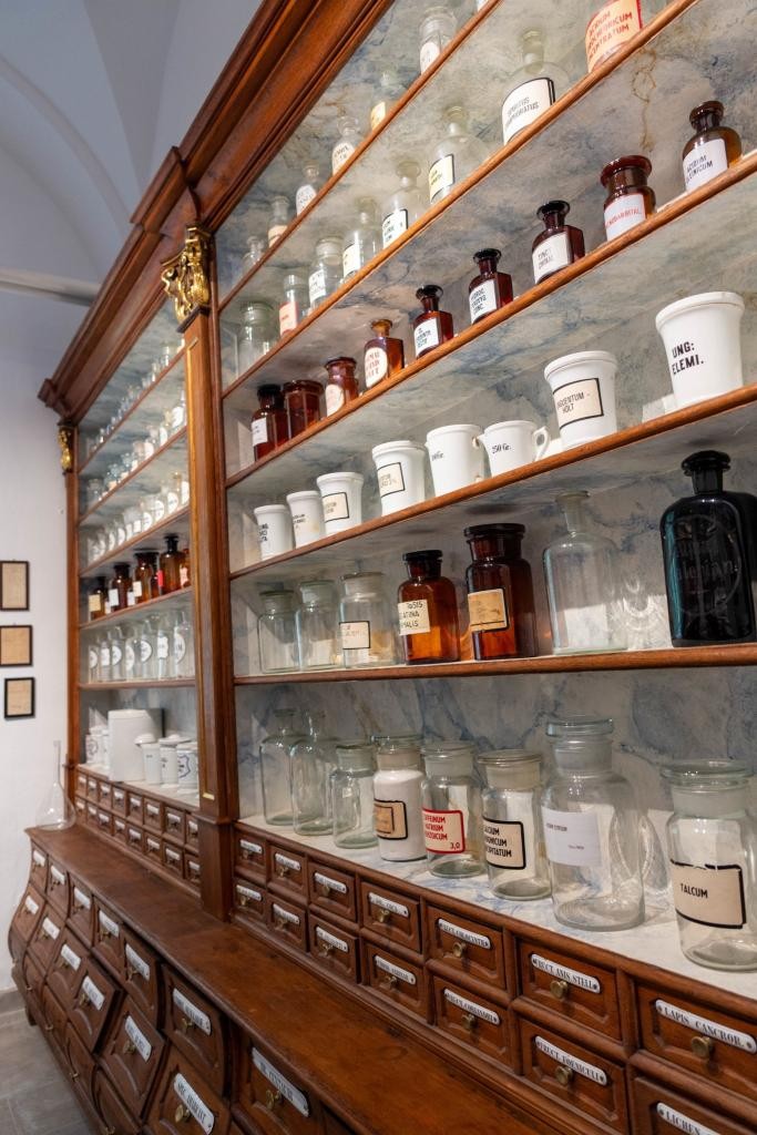 Súčasťou expozície sú aj staré lekárnické nádoby