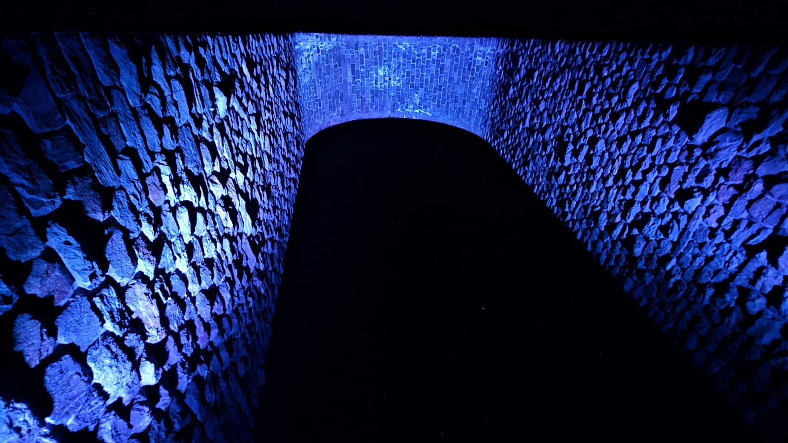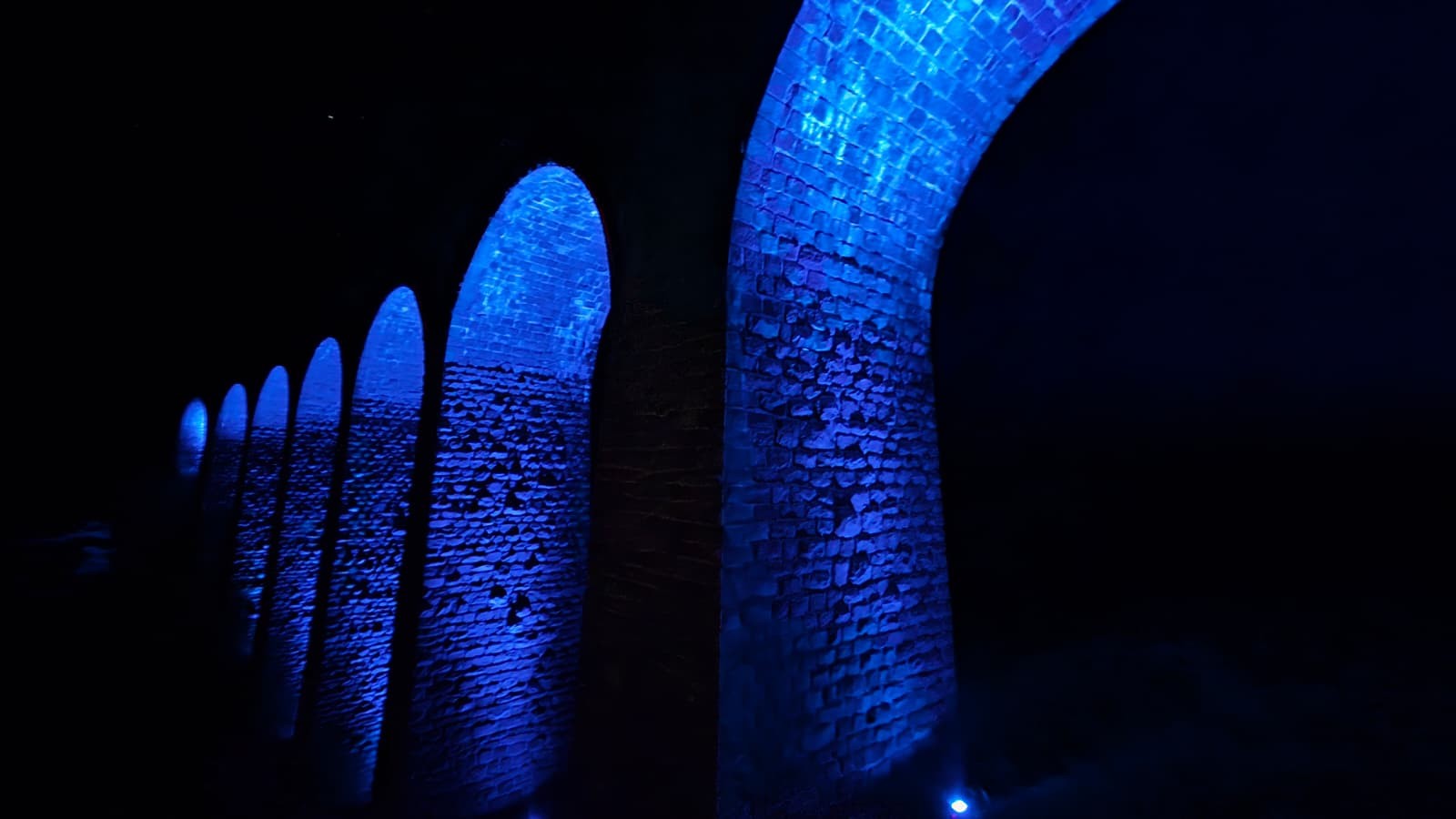 Detailný pohľad na osvetlený oblúk viaduktu