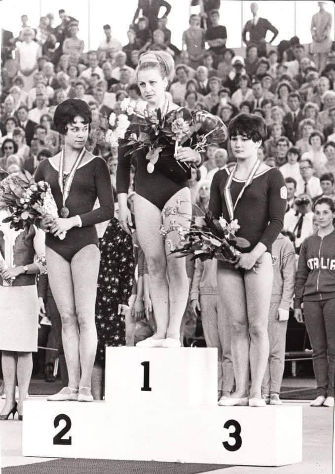 Věra Čáslavská (1.miesto) a Marianna Némethová Krajčírová (3.miesto) na stupňoch víťazov